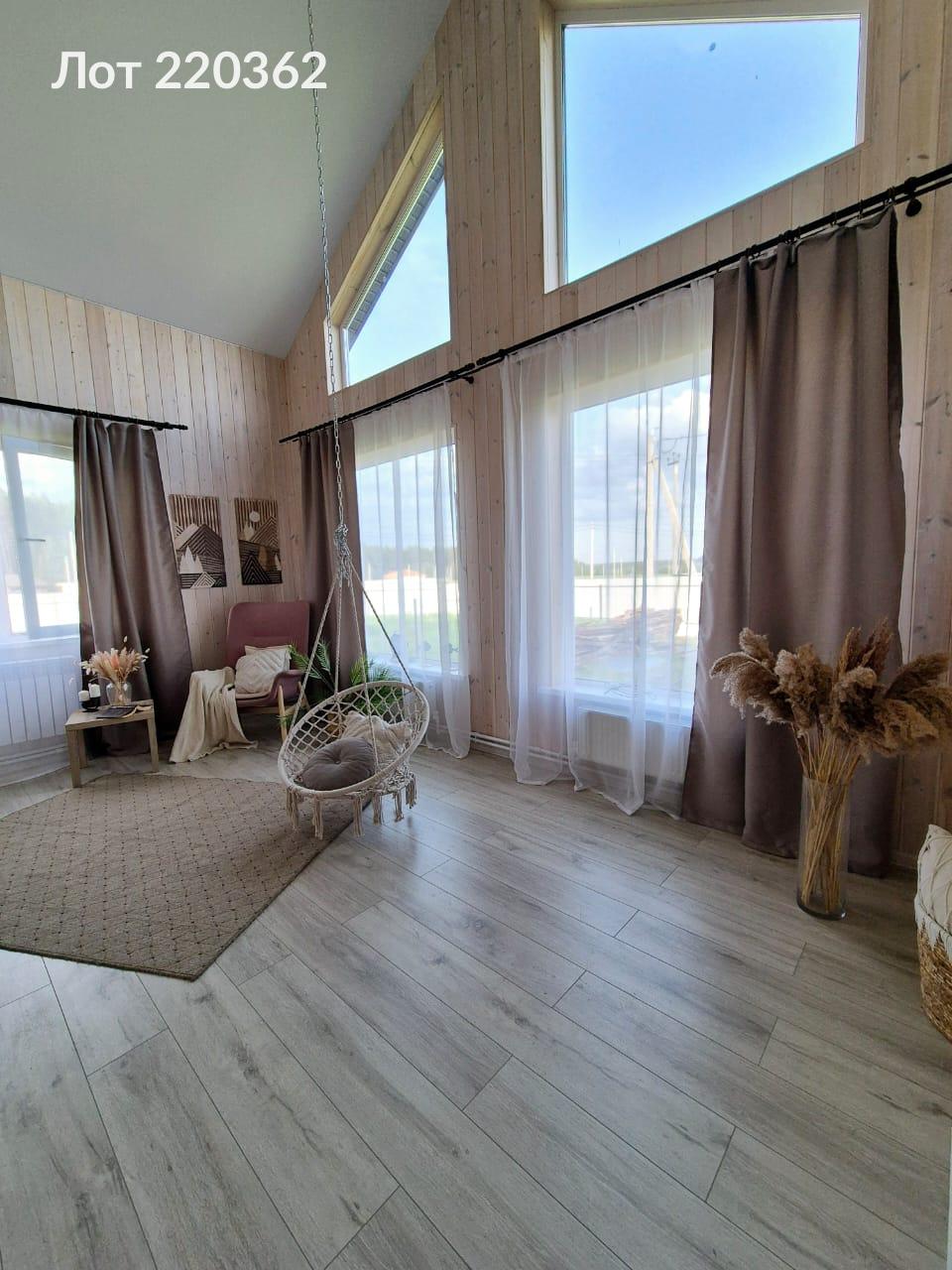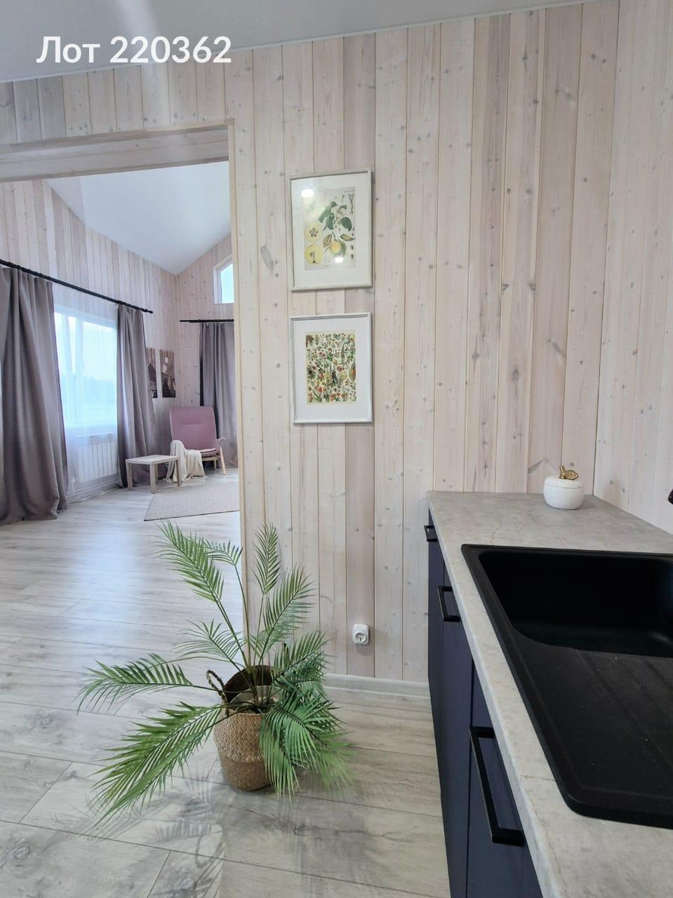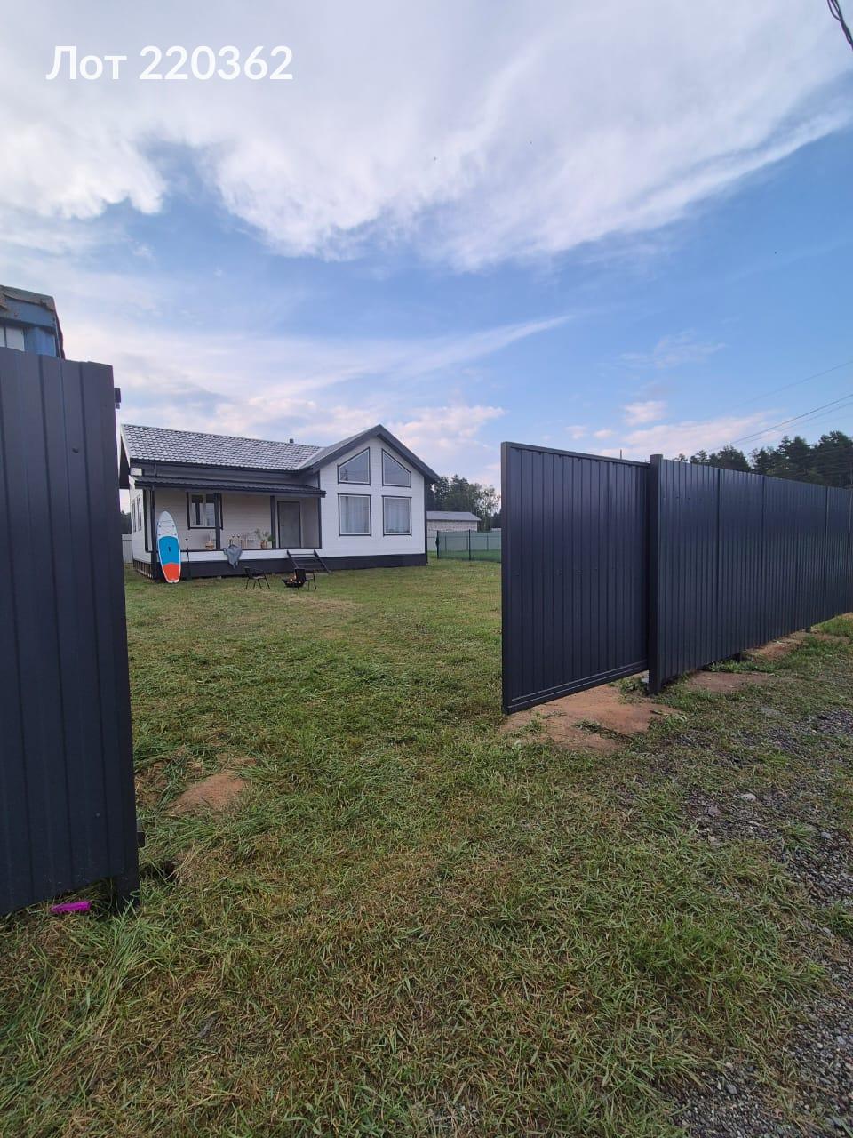 Лот № 220362 Продаем новый дом с участком, идеальное расположение для отдыха от городской суеты. Дом каркасный, расположен в котеджном поселке, охрана 24/7, невысокое обслуживание, регулярный вывоз мусора. Участок сухой и ровный, рядом лес. Дом с мансардным этажом, мансардный этаж можно отделать, и полощадь увеличтся дл 150 м2. В дома: отдельная кухня, большая гостинная с панорамными окнами, 2 спальни, С/У, прихожая, терраса. Электричество 15 кВт, со скрытой разводкой. Готовы немного торговаться, быстрый выход на сделку.